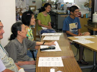 初めて親子手話教室を開きました。 形をまねた手話からはじめ、 色やあいさつ、天気や家族の 表現を学習しました |